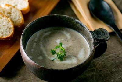 ①ミキサーに水200ccを入れ火にかけ、コンソメキューブ1個、デュクセル大さじ2〜3、滑らかになるまで攪拌する。