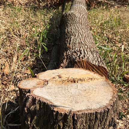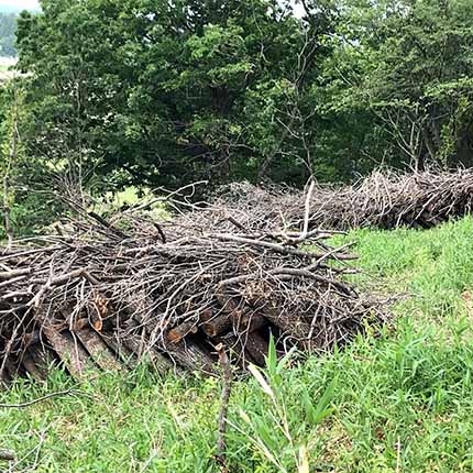 伐採後は、葉がついた状態で切り倒したまま山で2~3カ月放置します。